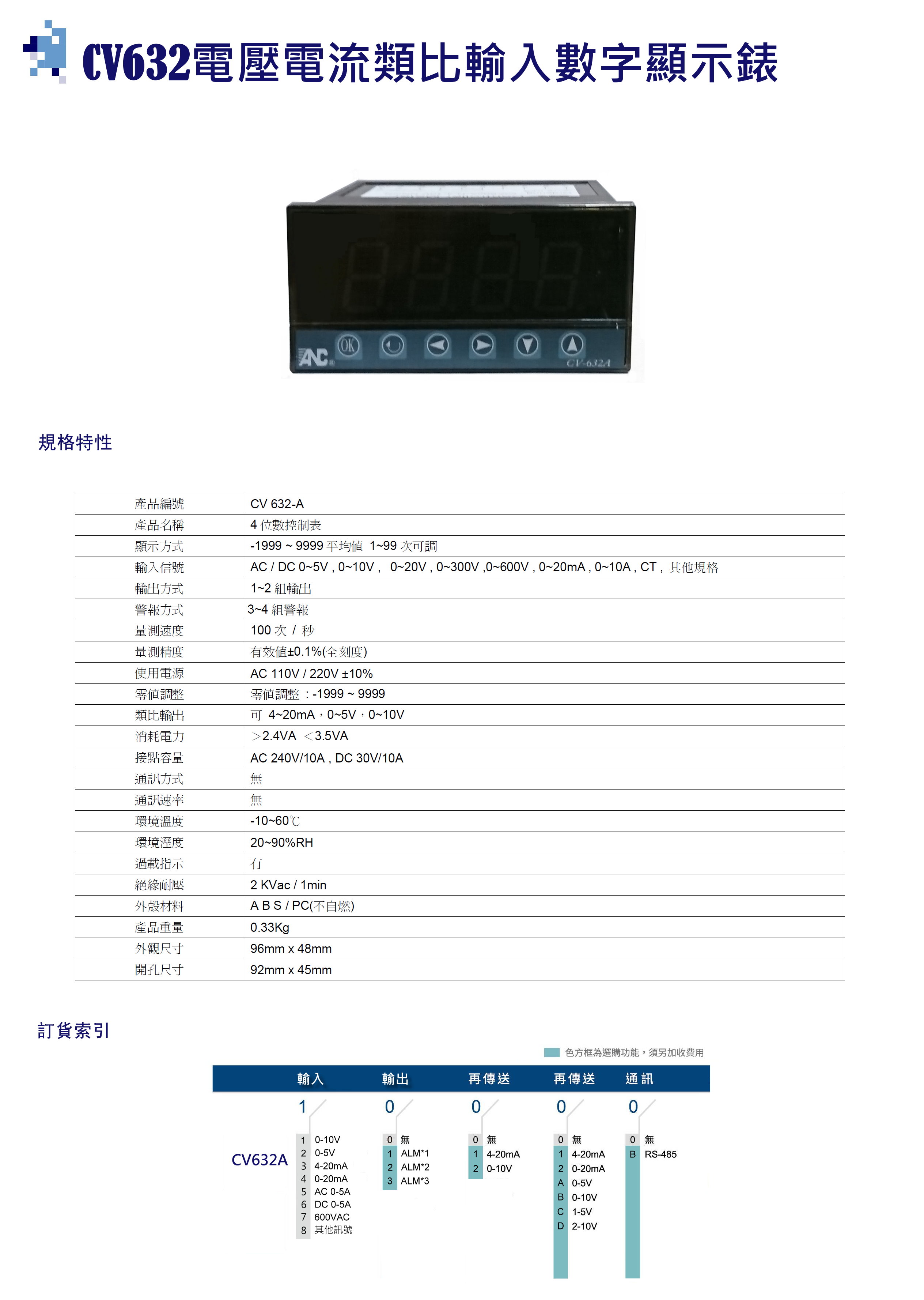 CV632A電壓電流類比輸入顯示錶